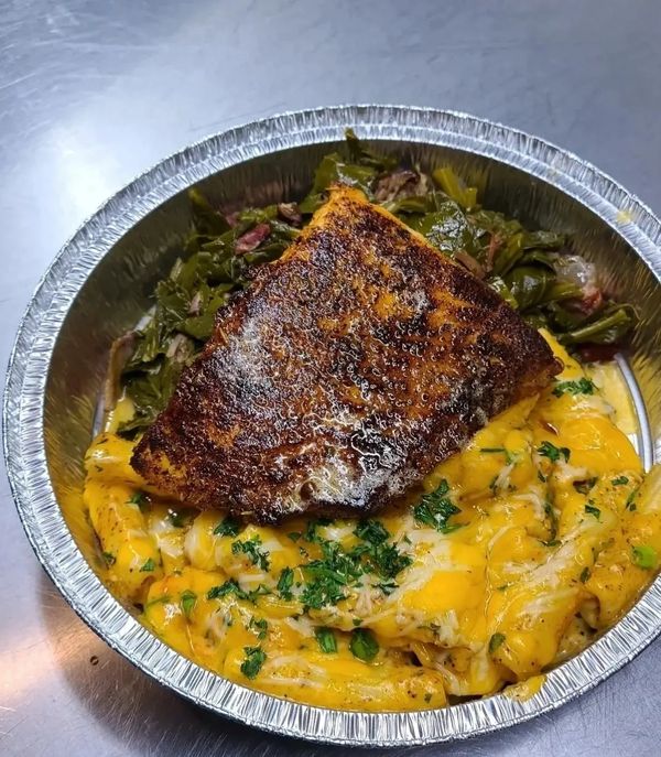 Baked Mac & Cheese, Heirloom Collards with Smoked Turkey Neckbones